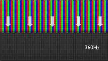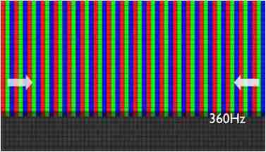 传统液晶驱动是从左到右单向进行,,在画面更新速度愈来越愈快的情况下,,,,位于驱动线路末端的右下角区域,,画素的闸极来不及在短时间内获得足够电压,,,无法显示出正确的颜色资讯。。 |
